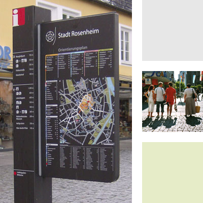 Die Stadt Rosenheim, Einzelhandel, Gastronomie, Stadtentwicklung, Denkmalpflege und Tourist-Info hatten Interesse an einem Wegeleitsystem, das dazu dient, die Gäste und auch die Bewohner der Stadt so einfach wie möglich auf lohnenswerte bzw. wichtige Ziele hinzuweisen und sie zu animieren, auch Stadtbereiche außerhalb der Fußgängerzone aufzusuchen. Ein klares und einheitliches Orientierungssystem wurde von der Stadt Rosenheim auch aus Gründen der Erleichterung der Handhabung von zahlreichen Einzelanträgen auf Wegweisung gewünscht.